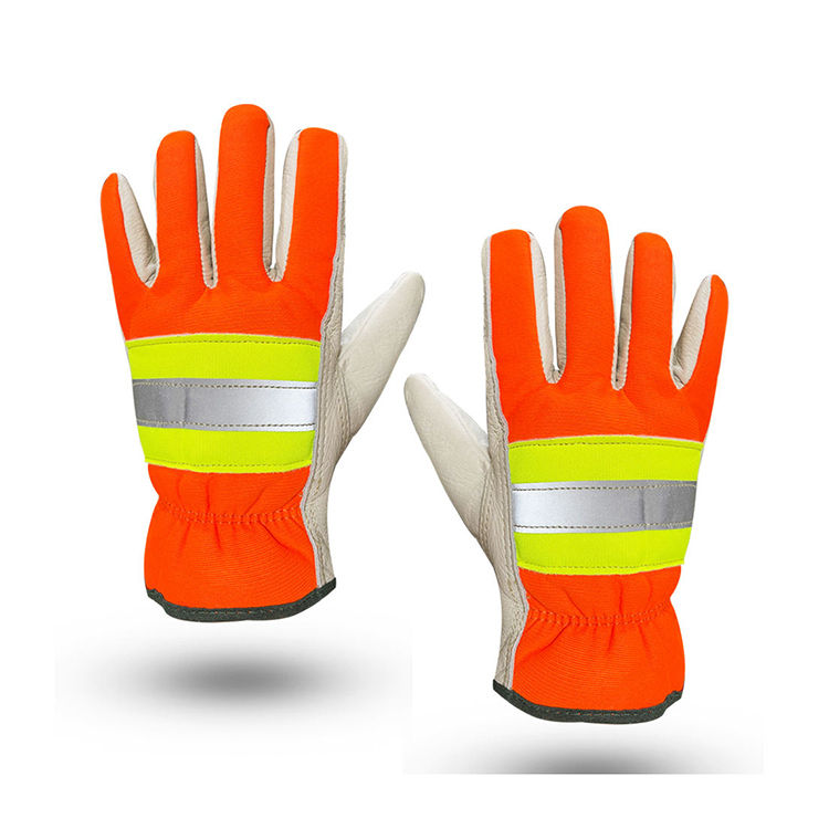 ถุงมือหนังวัวแยกชิ้นเกรดพรีเมี่ยมถุงมือหนังสะท้อนแสงมองเห็นได้ถุงมือหนังอุตสาหกรรมทำงาน