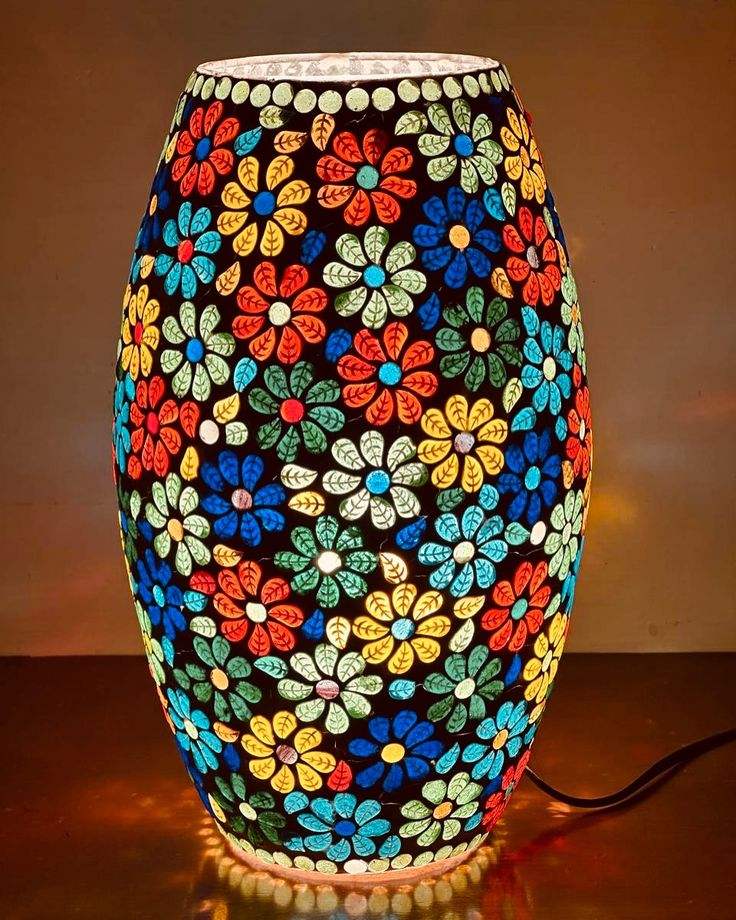 โคมไฟโมเสคเกรดพรีเมียม ลายดอกไม้หลากสี ดีไซน์งานฝีมือ โคมไฟโมเสคสำหรับขาย