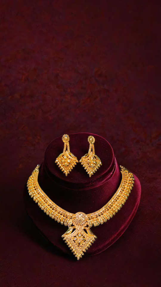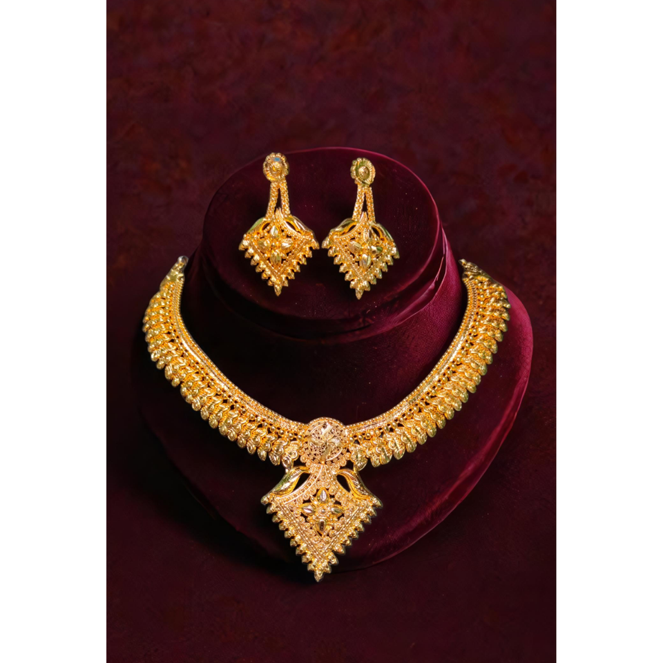 ชุดต่างหูสร้อยคอเกรดพรีเมี่ยมพร้อมเครื่องประดับชุดต่างหูสร้อยคอชุบทอง22K สำหรับผู้หญิง
