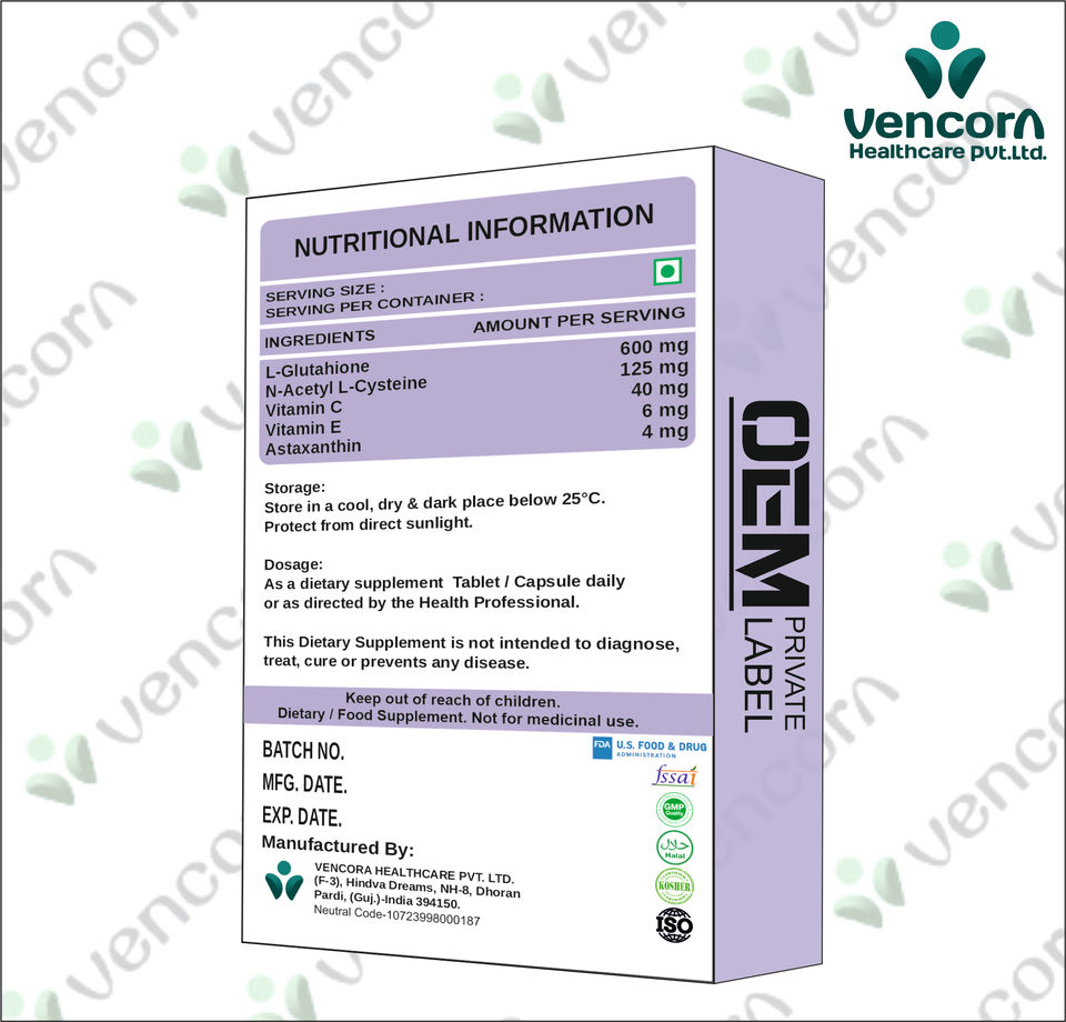 ส่วนผสมหลัก:L-GLUTATHIONE, N-ACETYL L-CYSTEINE, วิตามินซี, วิตามินอี, แอสตาแซนธิน