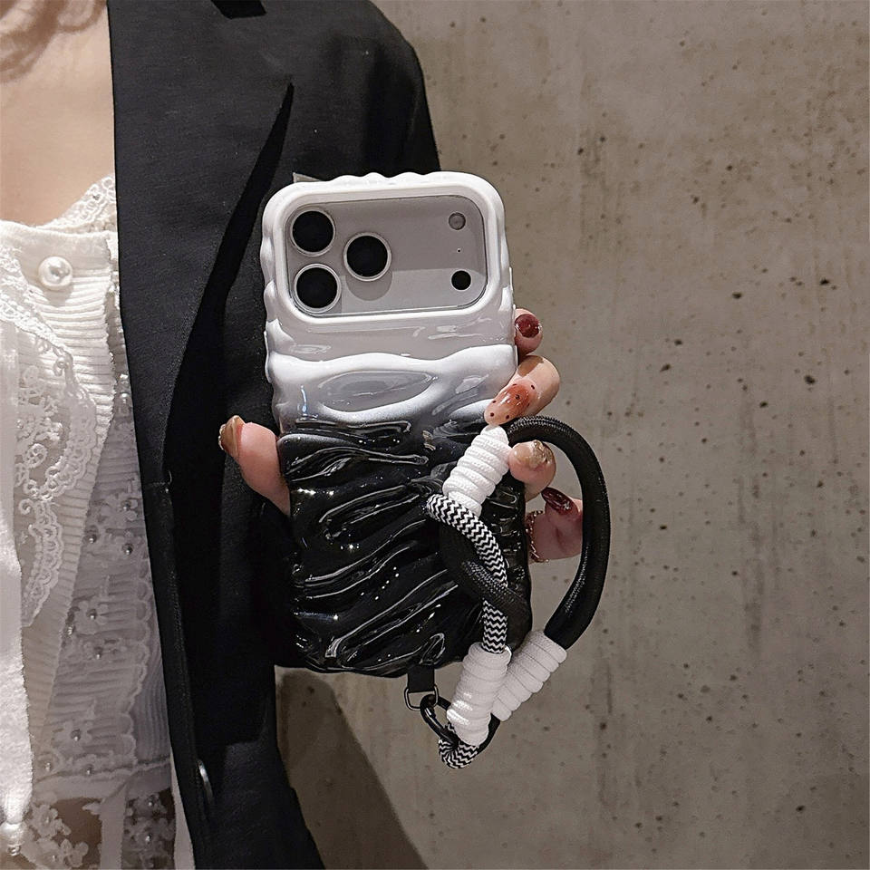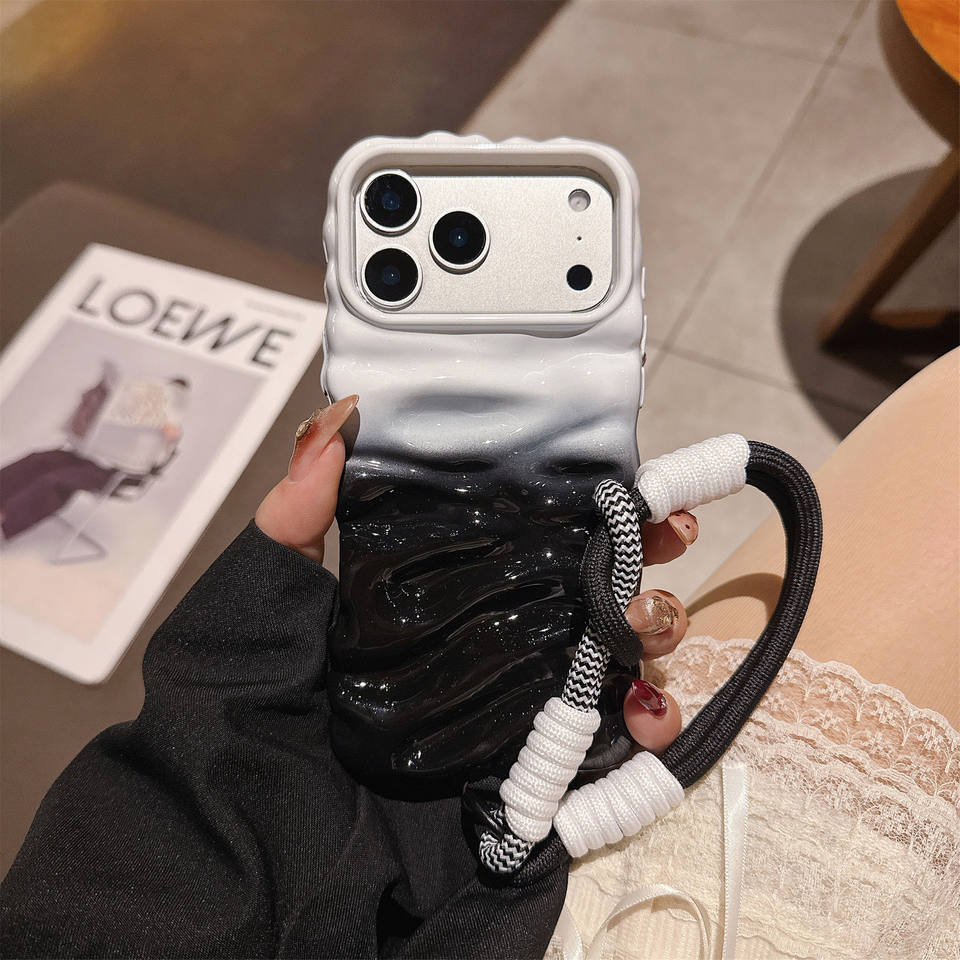 เคสโทรศัพท์ TPU สีดำขาวไล่เฉดพรีเมียม สำหรับ 16 Pro Max พร้อมสายคล้อง ป้องกัน 360 องศา กันกระแทก