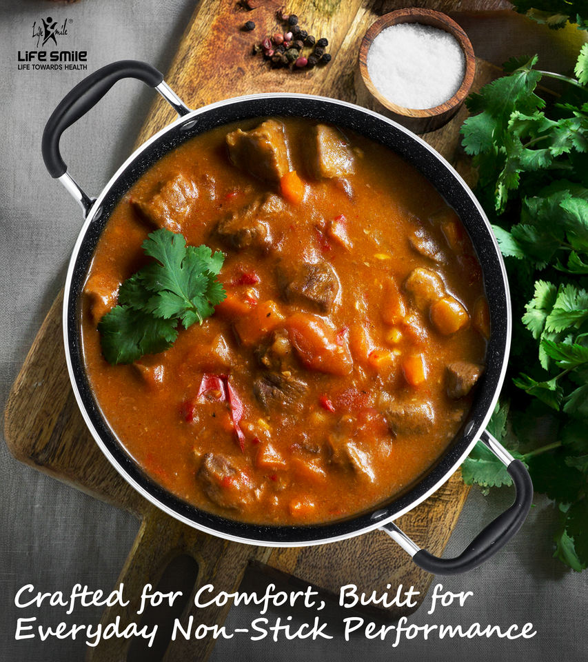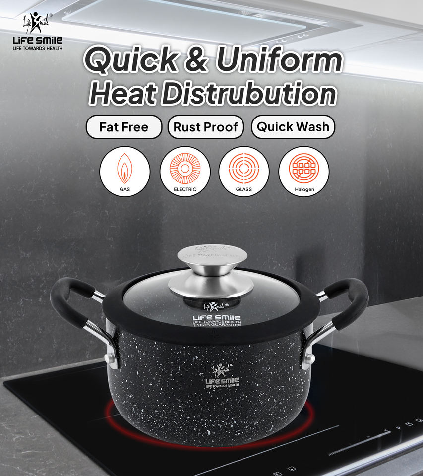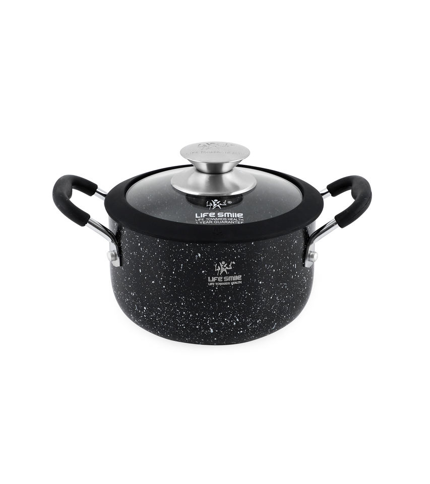 หม้อซุปหินแกรนิตคุณภาพพรีเมียม พร้อมฝาแก้วและขอบซิลิโคน