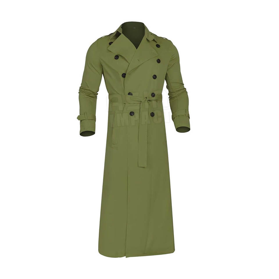Premium Green Double Breasted Long Trench Coat Men's Classic Windbreaker Overcoat with Belt Wholesale Custom OEM - FREE SAMPLE