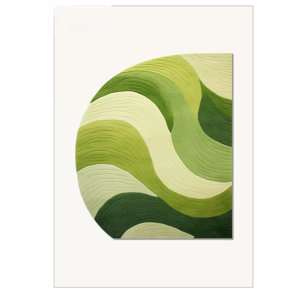 พรมขนสัตว์นามธรรมสีเขียวแบบพรีเมี่ยมทำด้วยมือทรงสูงแบบไม่สม่ำเสมอแต่งบ้านสำนักงานที่เหมาะสมมีขนาด4*5 12*12ฟุต