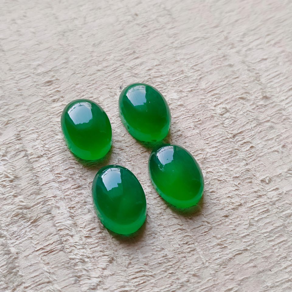 อัญมณีทรงหลังเบี้ยรูปไข่สีเขียวนิลสีเขียวพรีเมี่ยม-รูปไข่-ขนาดสอบเทียบ6x8มม. ถึง20x30มม.-ขัดเงาเรียบ-แพ็ค10ชิ้น