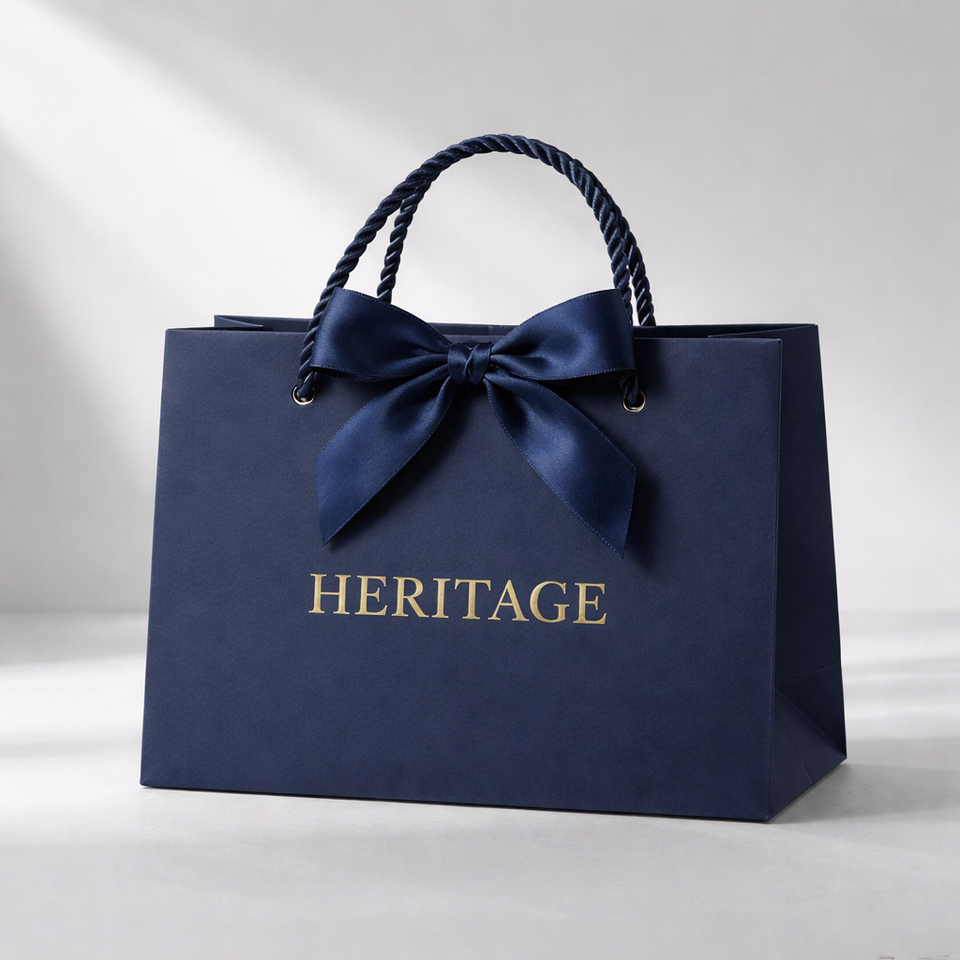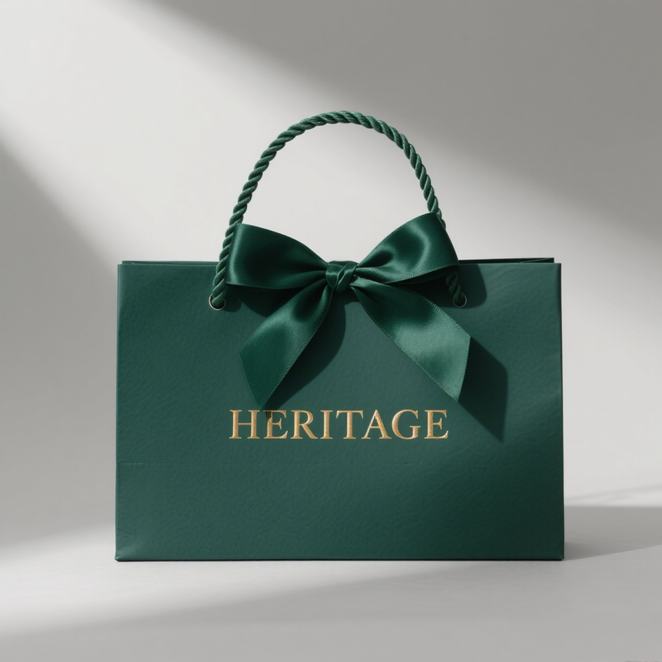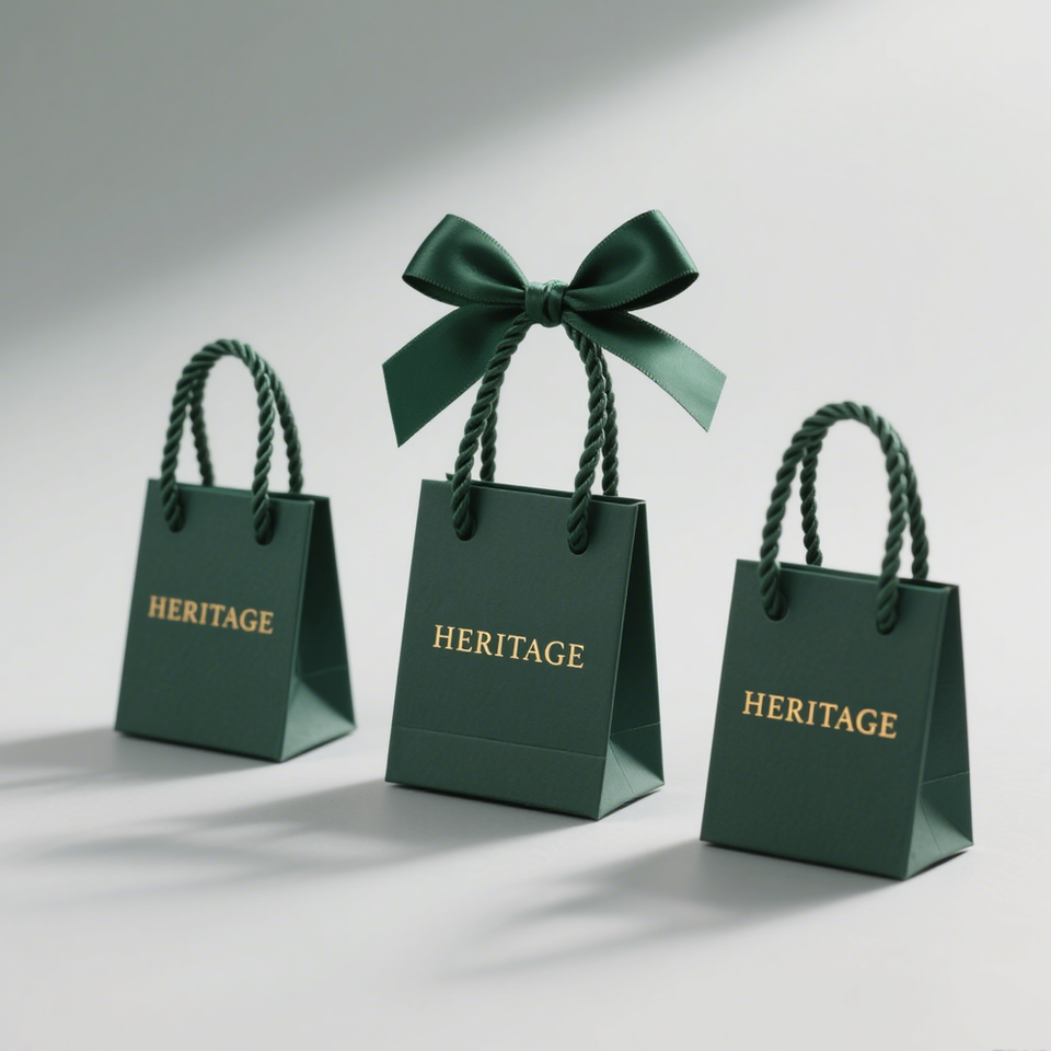 ถุงกระดาษสีเขียวพรีเมียมพร้อมหูหิ้วโบว์ริบบิ้น บรรจุภัณฑ์ของขวัญและขายปลีกสุดหรูสำหรับเสื้อผ้าแฟชั่นและเครื่องประดับ