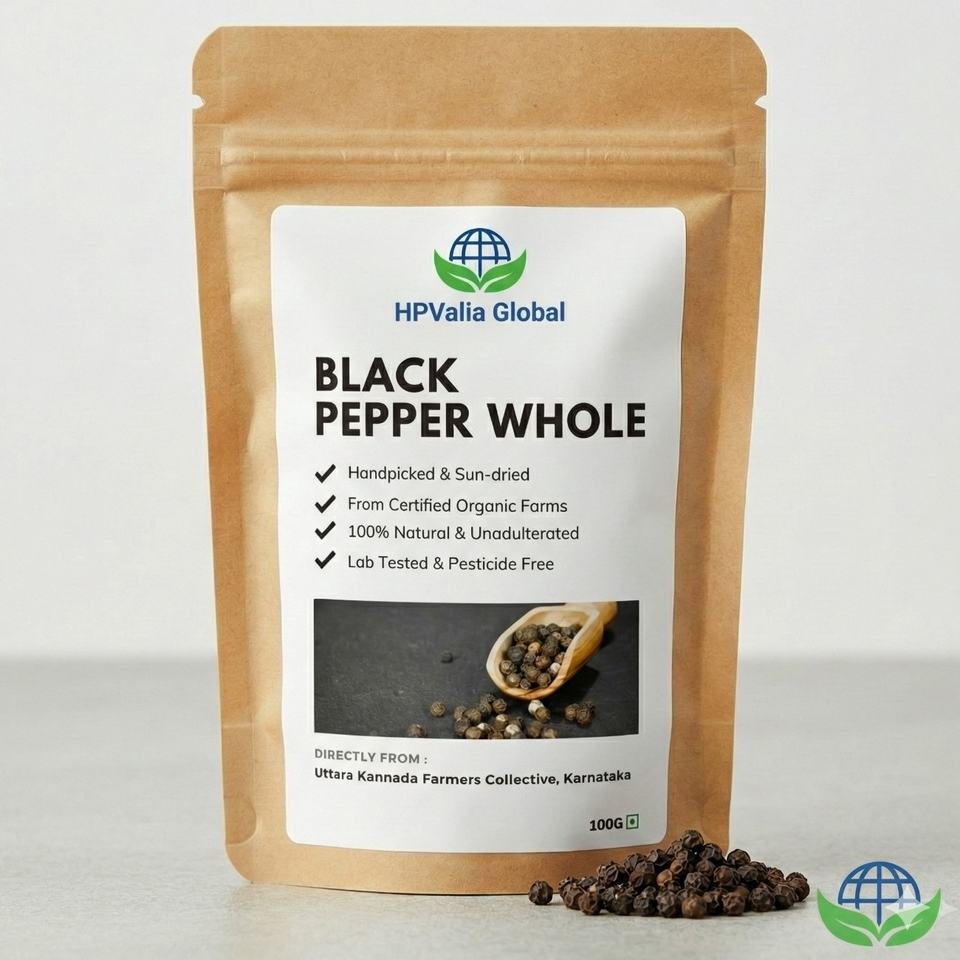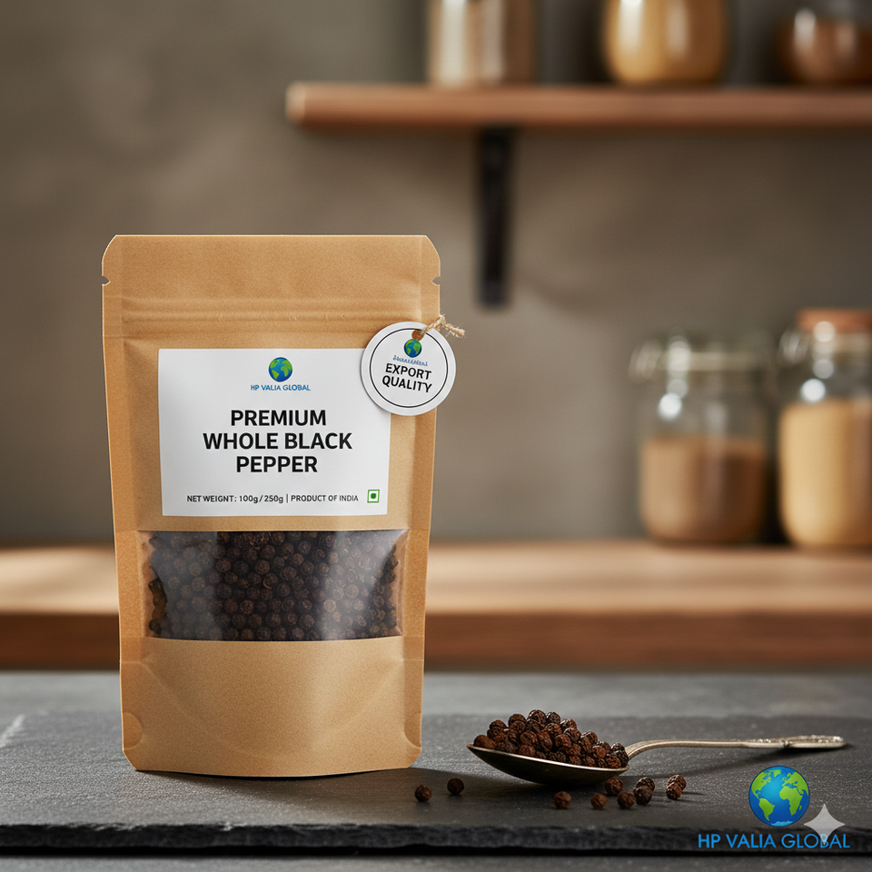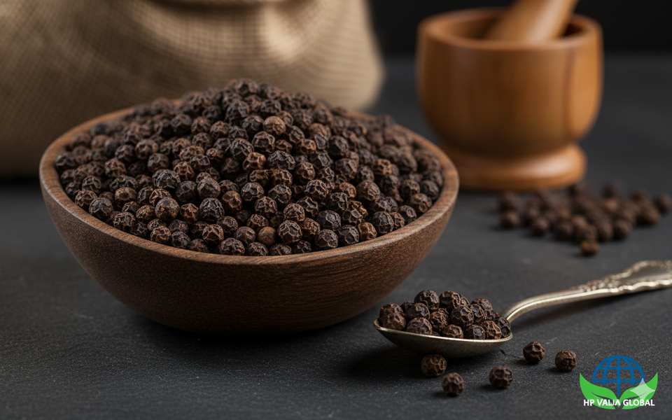 พริกไทยดำดิบคุณภาพพรีเมียม HP Valia อบแห้งแบบตากแดดทั้งเม็ด เกรดอาหาร สำหรับส่งออกจำนวนมาก จากอินเดีย