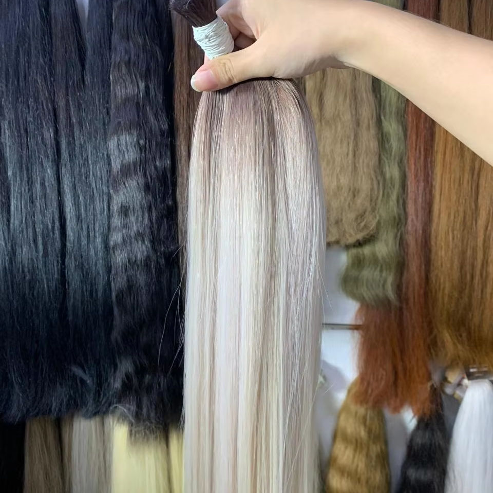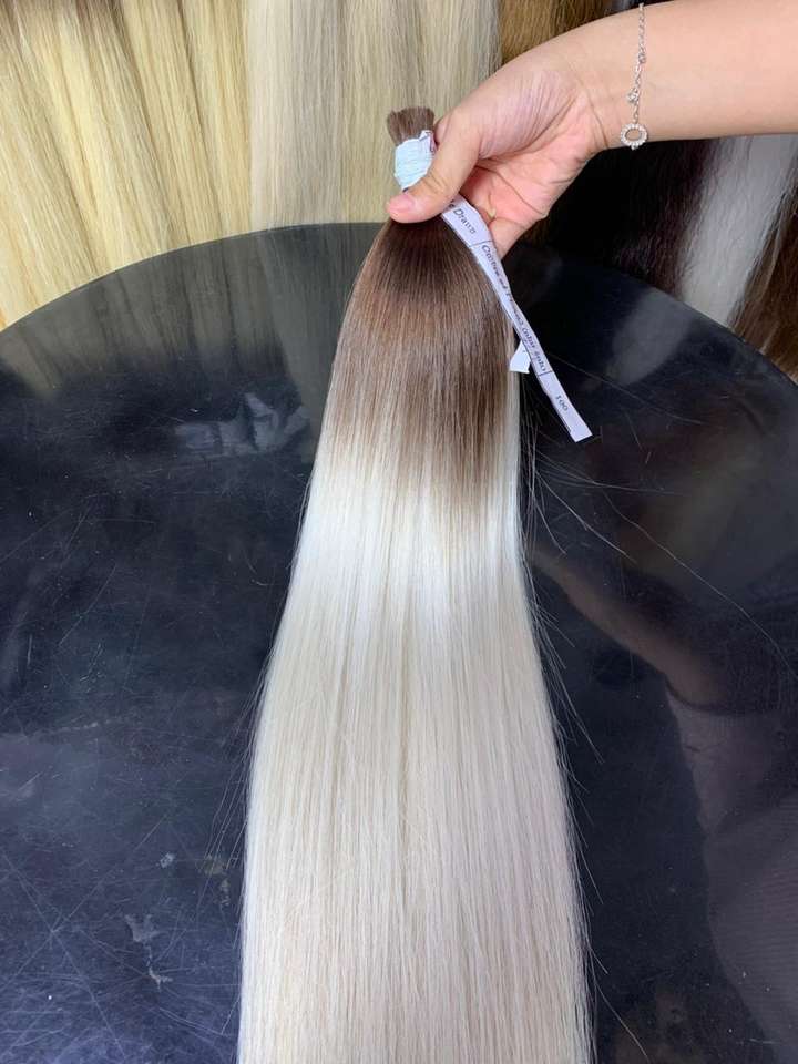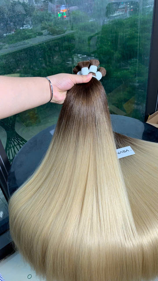 ผมต่อแบบพรีเมี่ยมสีบลอนด์แบบไล่เฉดสีร้อนสองชั้นขนาด60 65ซม.