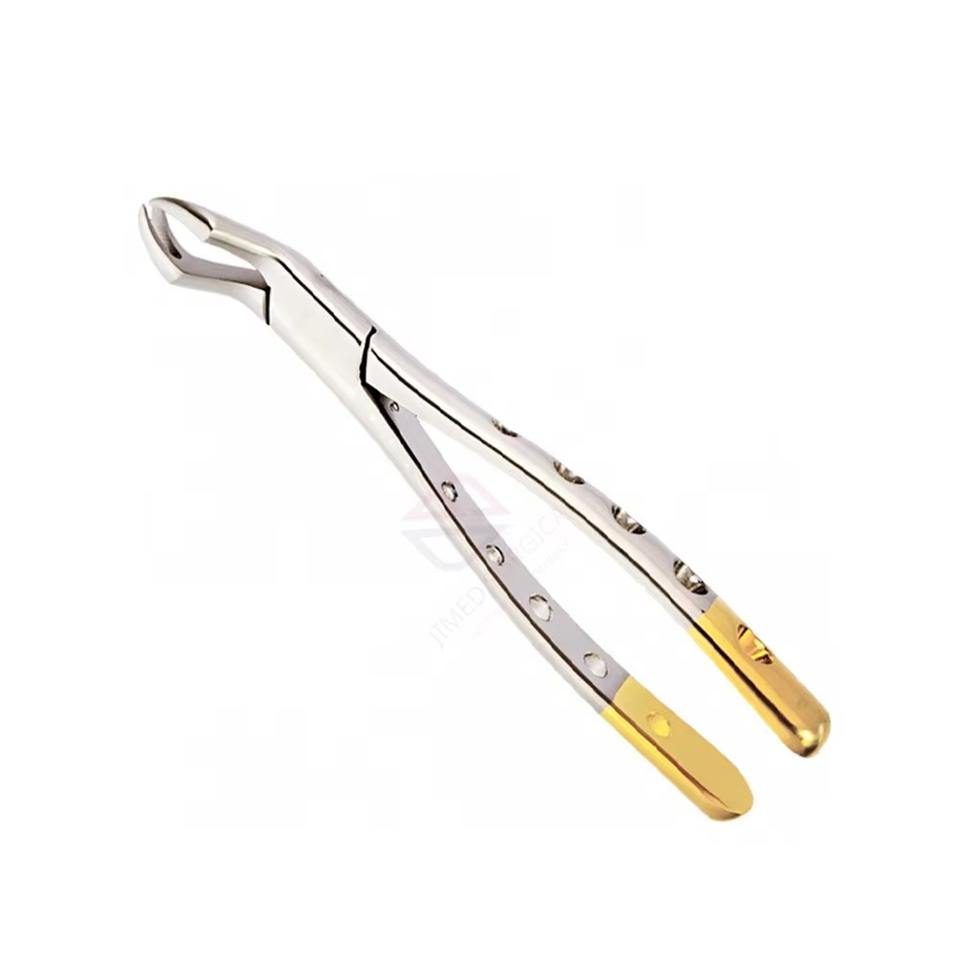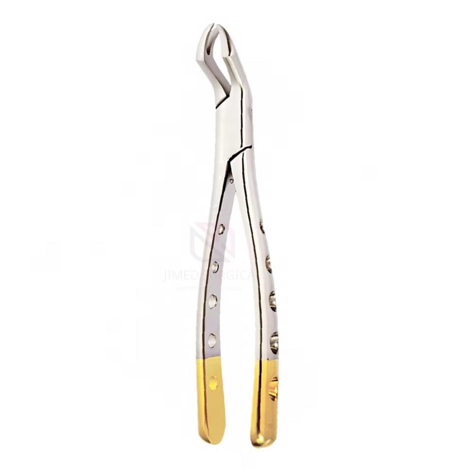 คีมถอนฟันแบบอเมริกัน ครึ่งทอง สำหรับฟันกรามซ้าย ระดับพรีเมียม | เครื่องมือผ่าตัดช่องปากแบบใช้ซ้ำได้ ทำจากสแตนเลส