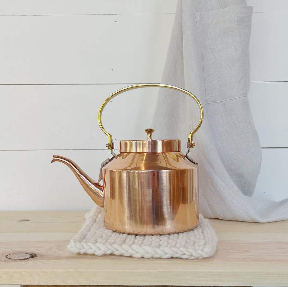 Premium Hammered Copper Teapot with Brass Handle and Floral Wooden Grip for Tea Coffee Water Boiling Home Use