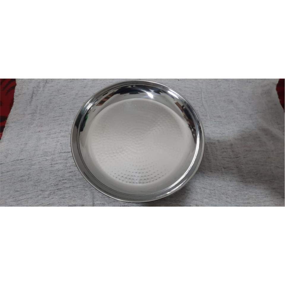 ถาดเสิร์ฟสแตนเลสแบบตอกลายพรีเมียม - จานโลหะทรงกลมขัดเงาสำหรับร้านอาหาร โรงแรม และบริการจัดเลี้ยง