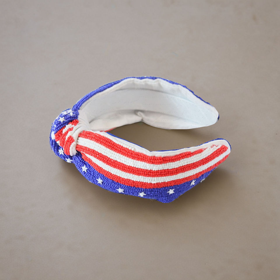 Premium Hand-Beaded Craftsmanship Handmade USA Flag Beaded Headband American Flag Hairband Patriotic Accessories Wholesale