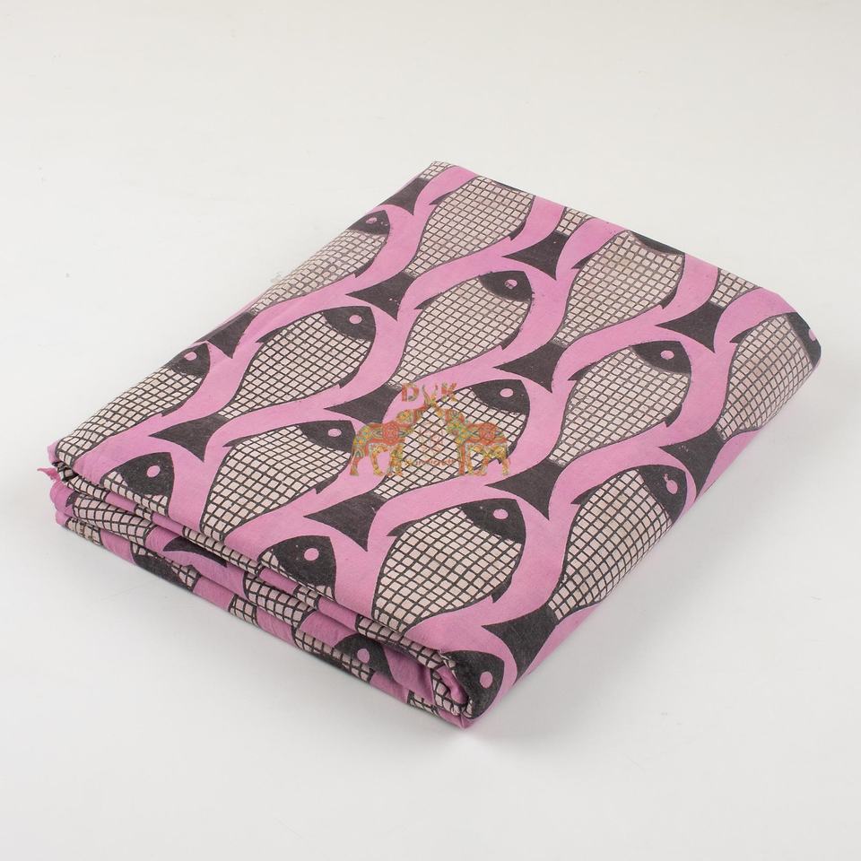 ผ้าฝ้ายพิมพ์ลายปลาแบบแฮนด์บล็อกคุณภาพพรีเมียม เนื้อนุ่ม น้ำหนักเบา แห้งเร็ว เหมาะสำหรับชุดเดรส เสื้อผ้าเด็ก แฟชั่นฤดูร้อน ผ้าสำหรับทำชุดคุर्ติส