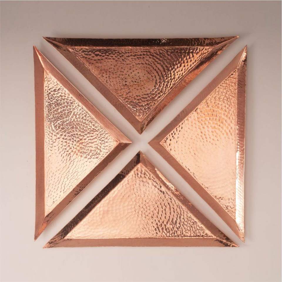 ชุดถาดทองแดงตีขึ้นรูปด้วยมือคุณภาพพรีเมียม ถาดโลหะรูปสามเหลี่ยมอเนกประสงค์สำหรับตกแต่งโต๊ะออตโตมัน ท็อปเคาน์เตอร์ และโต๊ะอาหาร