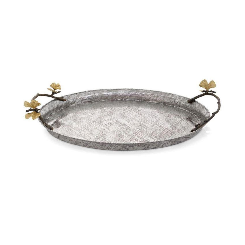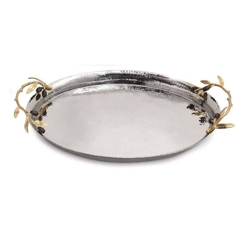 ถาดเสิร์ฟโลหะอาร์ตเดโคทำมือระดับพรีเมียม พร้อมหูจับลายดอกไม้สีทอง ถาดอเนกประสงค์ตกแต่งอย่างหรูหราสำหรับเทศกาลดีวาลี