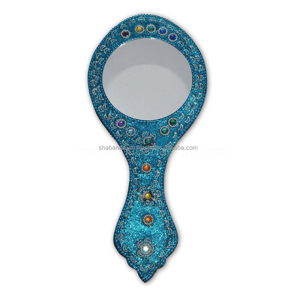 กระจกแต่งหน้ามือถือประดับลูกปัดกลิตเตอร์แลค