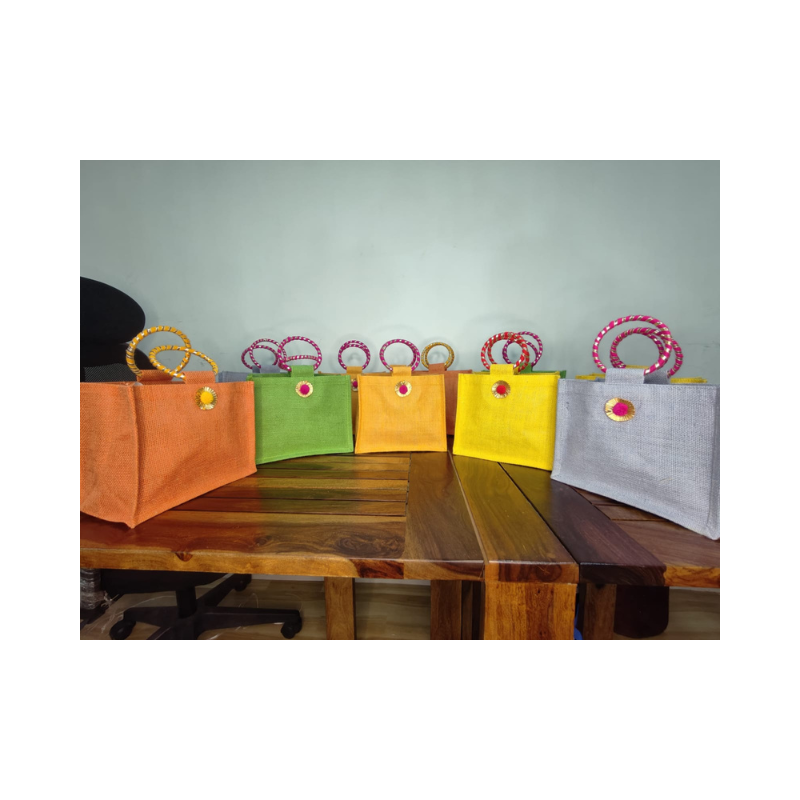 กระเป๋าปอกระเจาของนักออกแบบงานฝีมือระดับพรีเมี่ยมสำหรับการช้อปปิ้งของขวัญราคาส่งส่งออกอินเดียสำหรับผู้ถือเทียนโคมไฟเทียน