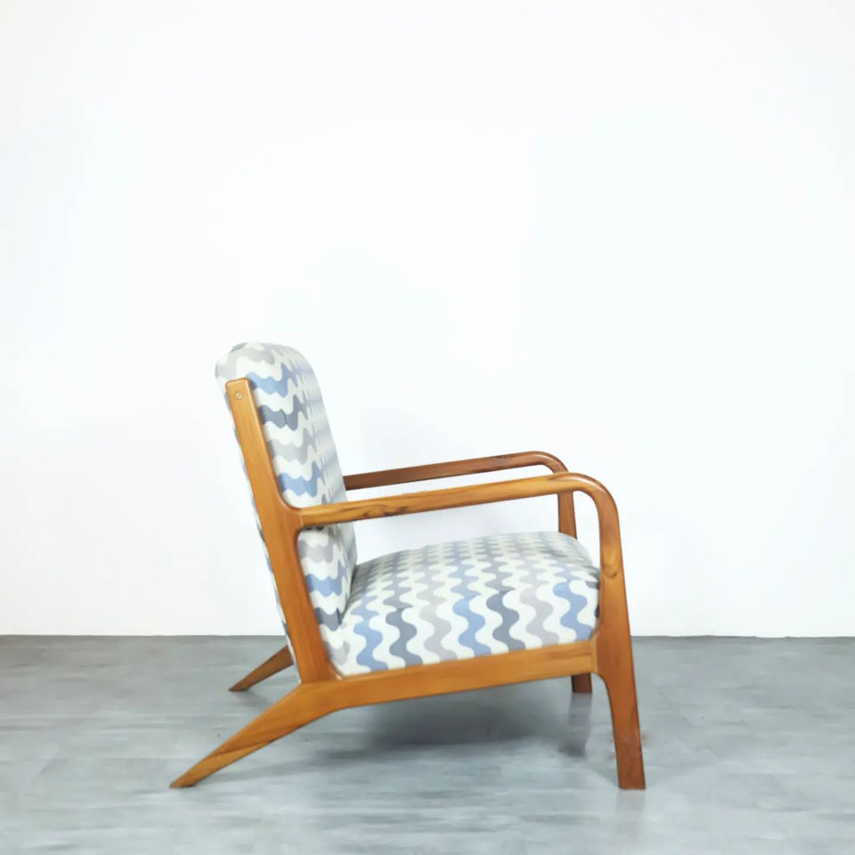 เก้าอี้พักผ่อนโครงไม้เนื้อแข็งทำมือคุณภาพพรีเมียม ตกแต่งด้วยผ้าหุ้มลายซิกแซก สำหรับห้องนอนโรงแรมหรู