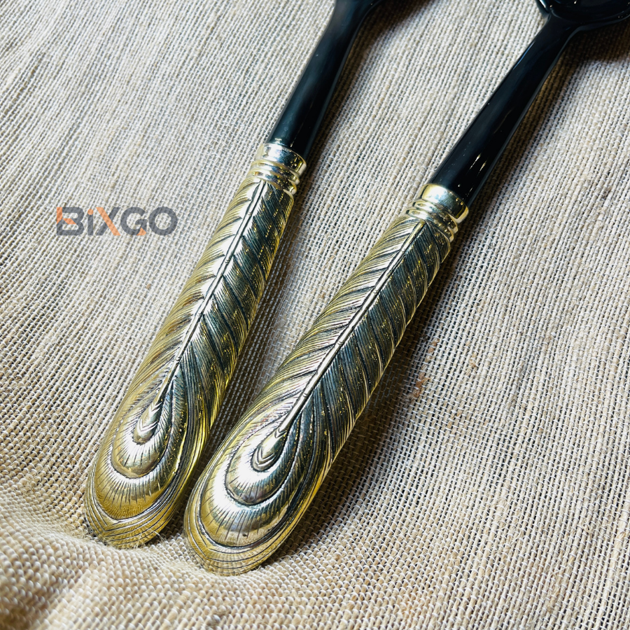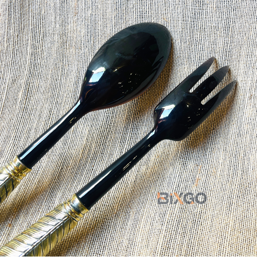 ชุดช้อนส้อมสลัดขนาดใหญ่ทำจากเขาควายทำด้วยมือแบบพรีเมี่ยมพร้อมที่จับสีเหลืองทำขายส่งจากเวียดนาม