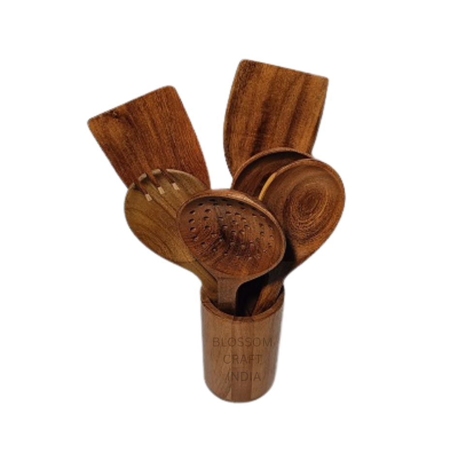 ชุดเครื่องใช้บนโต๊ะอาหารทำจากไม้อาคาเซียไม้พายมะม่วงงานทำมือแบบพรีเมี่ยมเป็นมิตรกับสิ่งแวดล้อมผลิตในอินเดีย