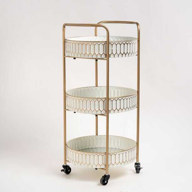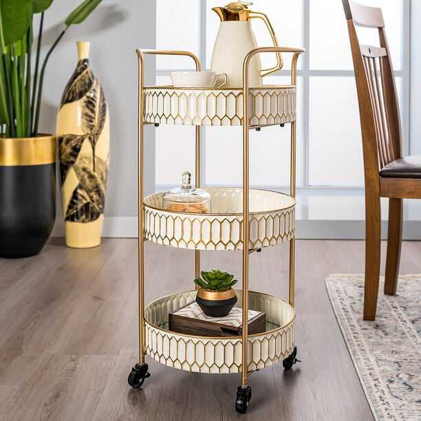 รถเข็นเสิร์ฟอาหาร 3 ชั้น งานโลหะทำมือคุณภาพพรีเมียม ออกแบบด้วยถาดแก้วสำหรับเสิร์ฟอาหารหรูหรา ดีไซน์สวยงาม ใช้งานง่าย