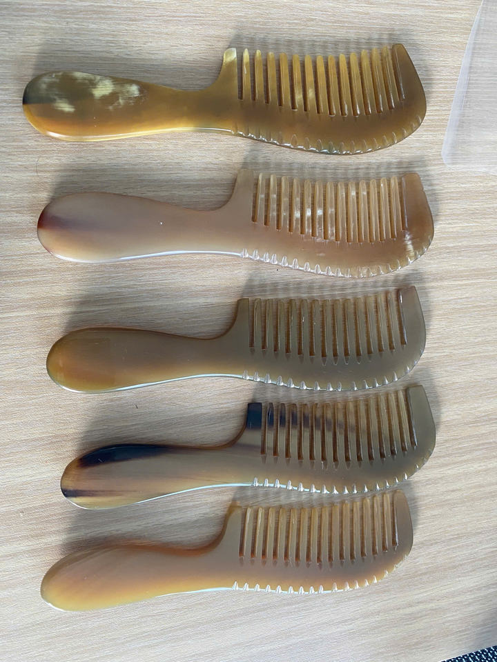 หวีฮอร์นธรรมชาติที่ทำด้วยมือแบบพรีเมี่ยมป้องกันไฟฟ้าสถิตย์ทำให้ผมไม่พันกันเนียนนวดหนังศีรษะและทำให้รากผมแข็งแรงขึ้นสำหรับการใช้งานในชีวิตประจำวัน