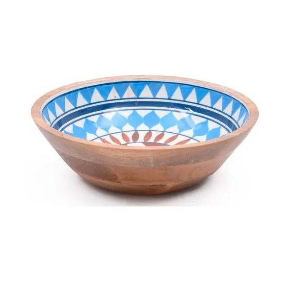 ของตกแต่งกลางชามไม้พิมพ์ลายทำมือสำหรับห้องครัวห้องรับประทานอาหารและการตกแต่งภายในบ้านที่สวยงาม
