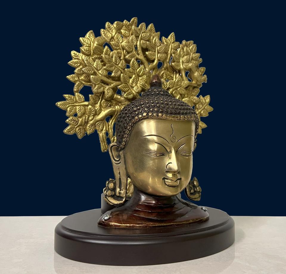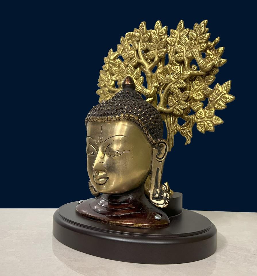 งานฝีมือพรีเมียม พระพุทธรูปทองเหลืองพร้อมฐานรูปต้นไม้ สำหรับวัดฮินดูและตกแต่งบ้าน ผลิตในรัฐราชสถาน ทำด้วยมือ