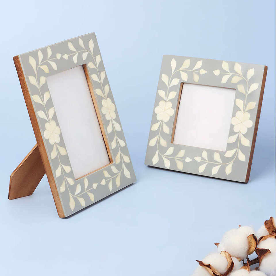 กรอบรูปไม้ฝังกระดูกทำมือระดับพรีเมียม เป็นมิตรกับสิ่งแวดล้อม ทนทาน ตกแต่งโต๊ะแบบโมเสก ผลิตในอินเดีย