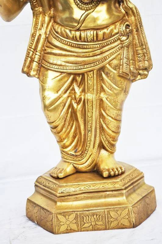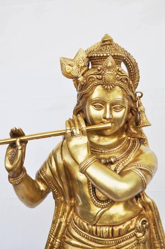เทวรูปพระกฤษณะทองเหลืองแบบพรีเมี่ยมพร้อมขลุ่ยสำหรับบรรยากาศทางจิตวิญญาณและการตกแต่งบ้านแบบดั้งเดิม