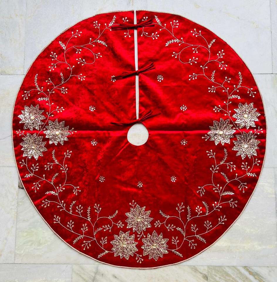 กระโปรงต้นคริสต์มาสทำมือระดับพรีเมียม ประดับด้วยลูกปัดอย่างประณีต ปรับแต่งขนาดและสีได้ เป็นมิตรกับสิ่งแวดล้อม ซักล้างได้ ทนทาน ดีไซน์สวยงาม ยกระดับการตกแต่งบ้านของคุณ