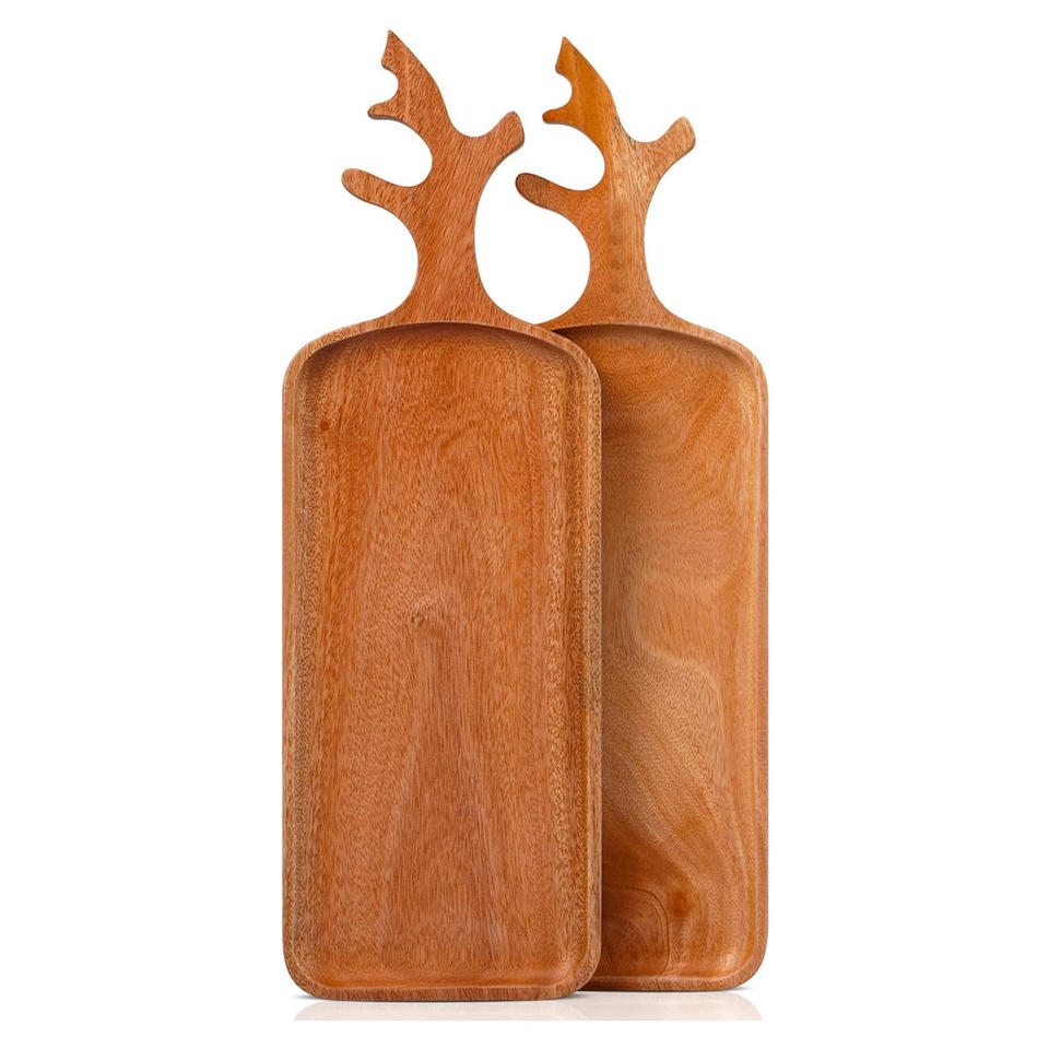 จานเสิร์ฟพร้อมด้ามจับเขากวางทำด้วยมือเป็นมิตรกับสิ่งแวดล้อมชุด2ชิ้นมีด้ามจับดีไซน์หรูหราทันสมัยสำหรับตกแต่งวันหยุด