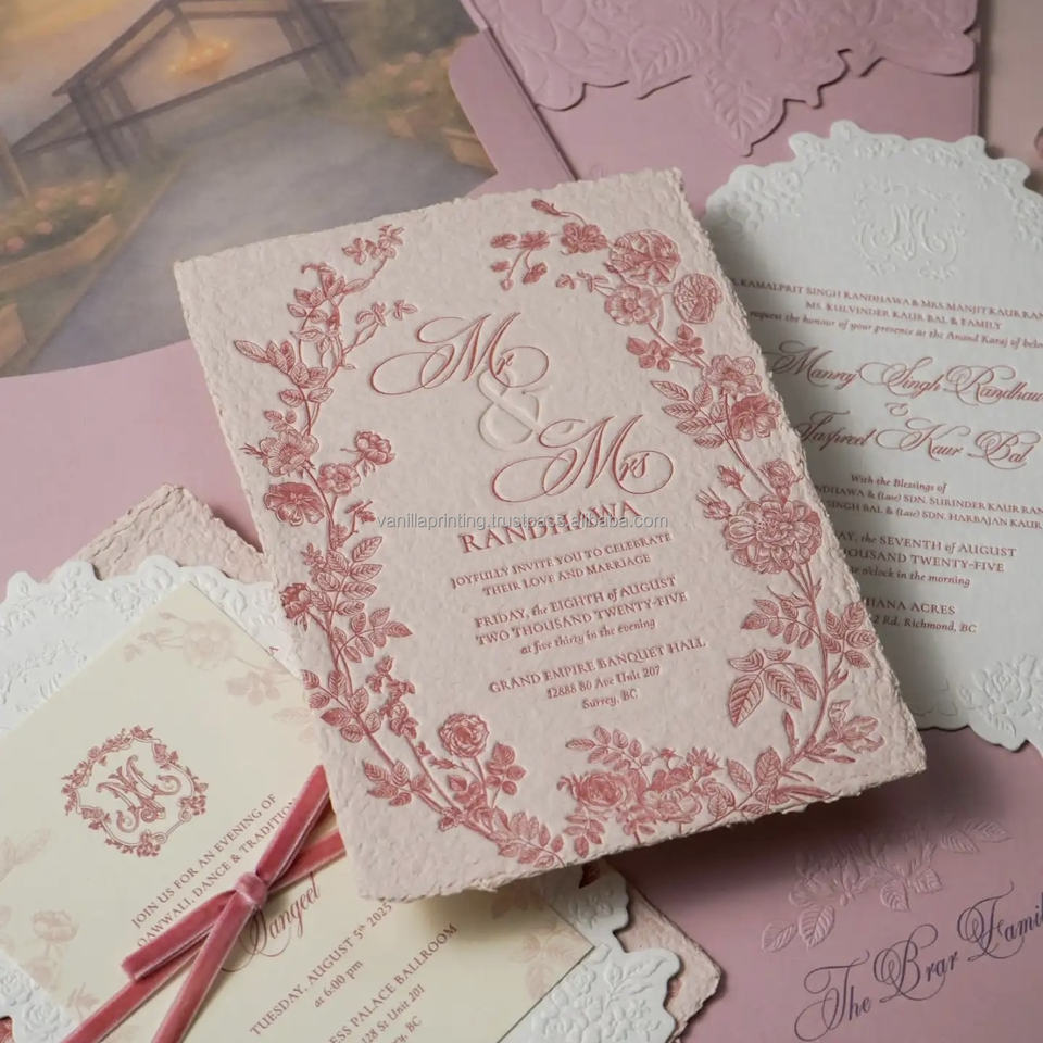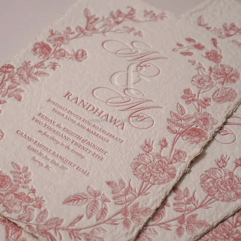 บัตรเชิญงานแต่งงานสุดหรูแบบพรีเมี่ยมเทคนิคการพิมพ์ตัวอักษรด้วยกระดาษโลโก้ที่กำหนดเองและผลิตภัณฑ์การพิมพ์กระดาษแข็ง