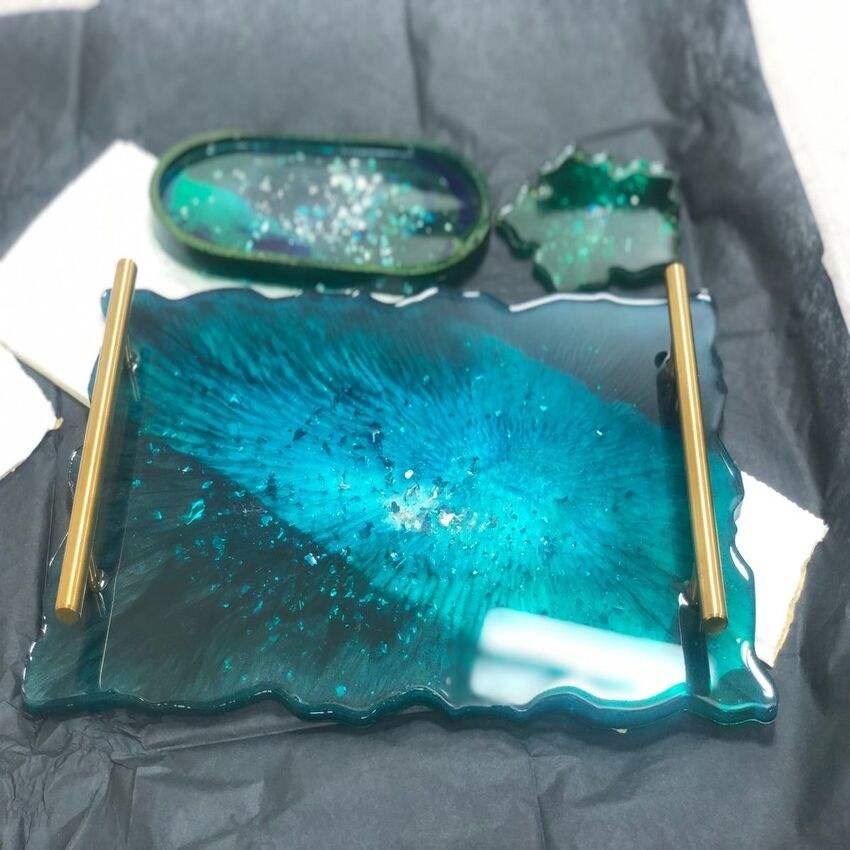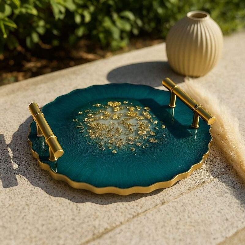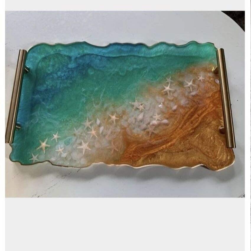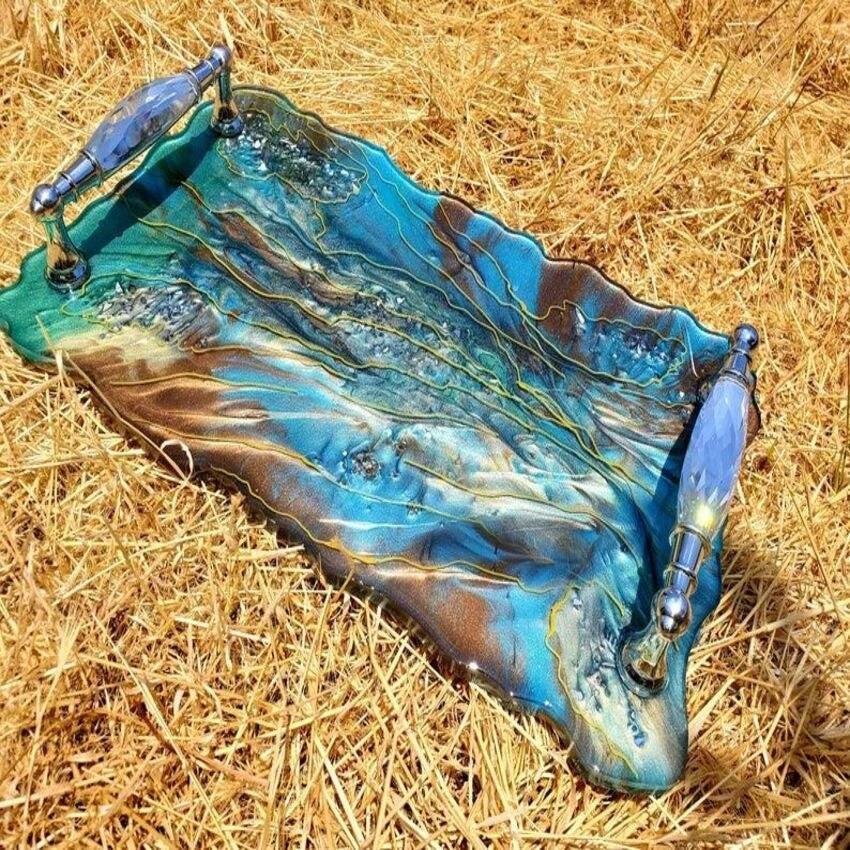 ถาดเรซิ่นลายดอกไม้ทำมือระดับพรีเมียม – ถาดเสิร์ฟตกแต่งด้วยอีพ็อกซี่สำหรับตกแต่งบ้าน เครื่องประดับ และจัดเก็บ