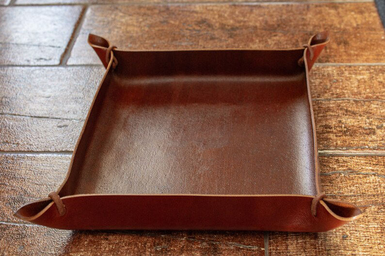 ถาดเก็บอุปกรณ์บนโต๊ะอาหารทำด้วยมือหนังแท้แบบพรีเมี่ยมถาดตกแต่งโต๊ะนำรถไปจอดที่วางเครื่องประดับที่จับแบบสั่งทำ LTR-0027ได้