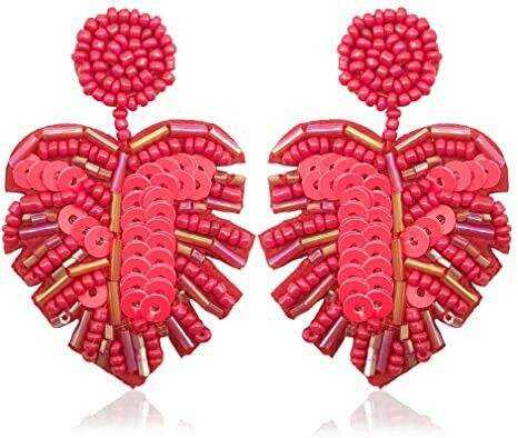 ต่างหูรูปหัวใจประดับลูกปัดทำมือระดับพรีเมียม ดีไซน์ทันสมัยแบบห้อยสำหรับผู้หญิง