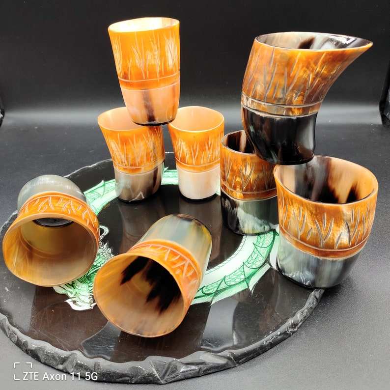 แก้วฮอร์นทำด้วยมือแบบพรีเมียมภาชนะเครื่องดื่มธรรมชาติแบบเรียบง่ายเป็นมิตรกับสิ่งแวดล้อมถ้วยที่มีสไตล์ทนทานเหมาะสำหรับกาแฟชาวิสกี้ให้เป็นของขวัญ