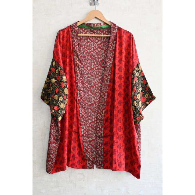 ชุดกิโมโนผ้าไหมอินเดียทำมือระดับพรีเมียม พิมพ์ลายดอกไม้ แขนสั้น ไซส์ใหญ่ สำหรับผู้หญิง ชุดนอนลำลองสำหรับฤดูใบไม้ร่วง