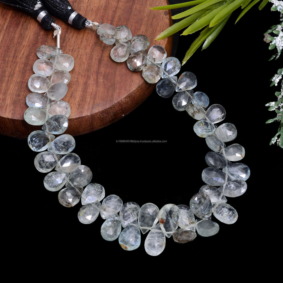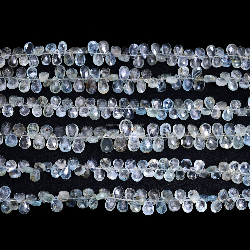 Premium Handmade Natural Aquamarine Faceted Pear Shape Gemstone Beads 8 Inch Strand for Jewelry Bracelet Necklace Making