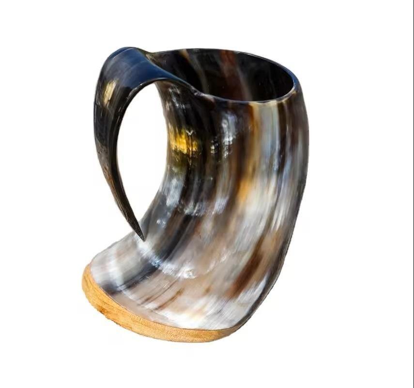 แก้วน้ำทำมือจากเขาสัตว์ธรรมชาติระดับพรีเมียมสำหรับเบียร์และกาแฟ | แก้วน้ำสไตล์ไวกิ้งแบบเรียบง่ายสำหรับบาร์ บ้าน และของขวัญ