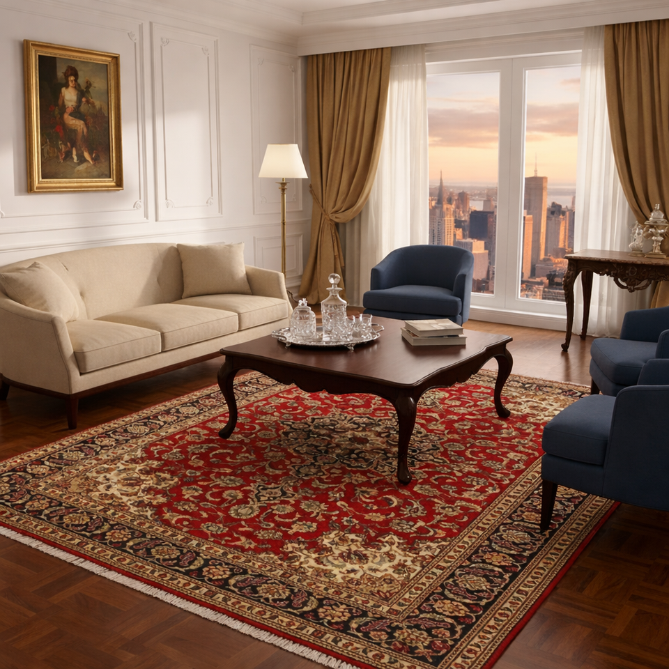 พรมปูพื้นสไตล์เปอร์เซีย งานแฮนด์เมด คุณภาพพรีเมียม ลายเรขาคณิต ทำจากขนสัตว์ ซักได้ เป็นมิตรกับสิ่งแวดล้อม และสัตว์เลี้ยง ขนปานกลาง ดีไซน์แบบดั้งเดิม