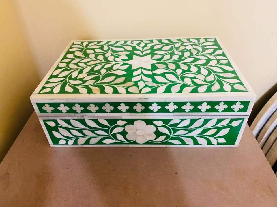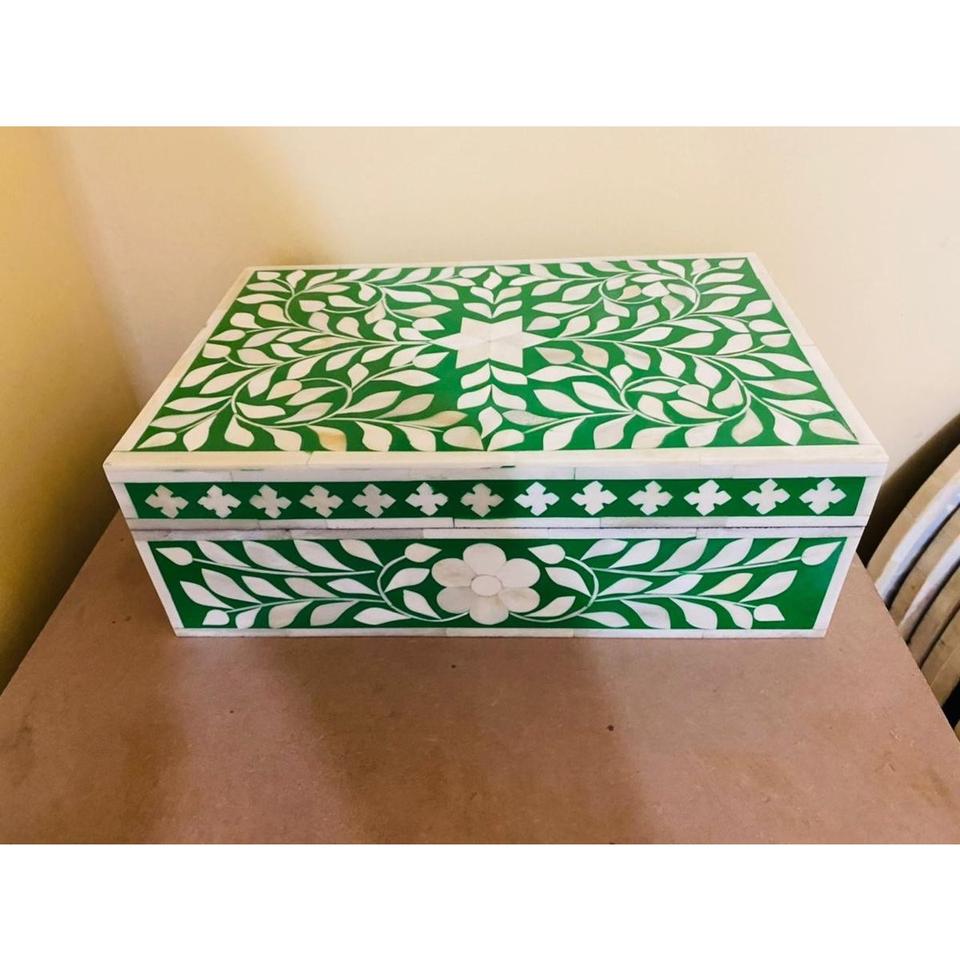 กล่องเก็บเครื่องประดับทรงสี่เหลี่ยมผืนผ้าฝังกระดูกทำมือระดับพรีเมียม ลวดลายคลาสสิกนูน พร้อมสีและขนาดที่ปรับแต่งได้สำหรับผู้ซื้อขายส่ง