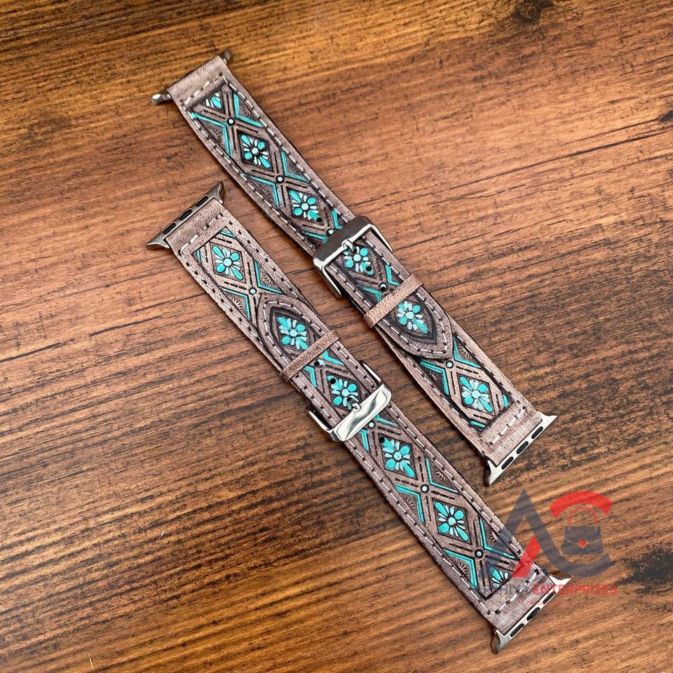 Hand Tooled Leather Smart Watch Band