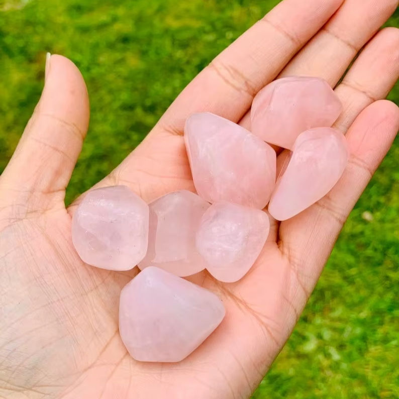 โรสควอตซ์ทรงอิสระคุณภาพพรีเมียม ขัดเงาด้วยมือ สำหรับการบำบัดทางจิตวิญญาณ โดย Muntaha Agate