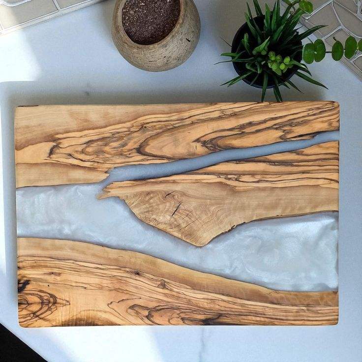 เขียงไม้ทำมือพรีเมียมเคลือบอีพ็อกซี่อเนกประสงค์ พร้อมถาดเสิร์ฟลายเรซิ่นริเวอร์