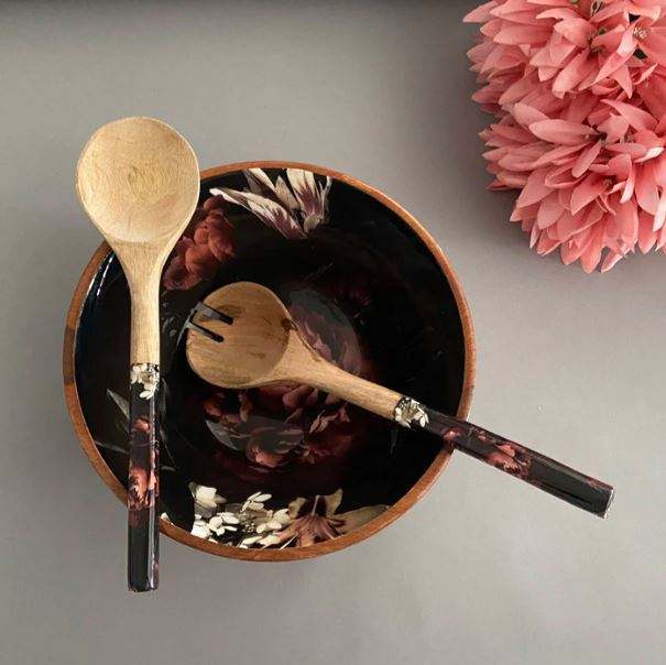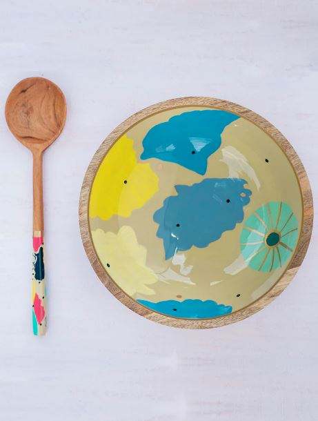 ชามไม้พิมพ์ลายระบายสีด้วยมือแบบพรีเมี่ยมสำหรับตกแต่งห้องครัวห้องรับประทานอาหารและการตกแต่งภายในบ้านที่สวยงาม