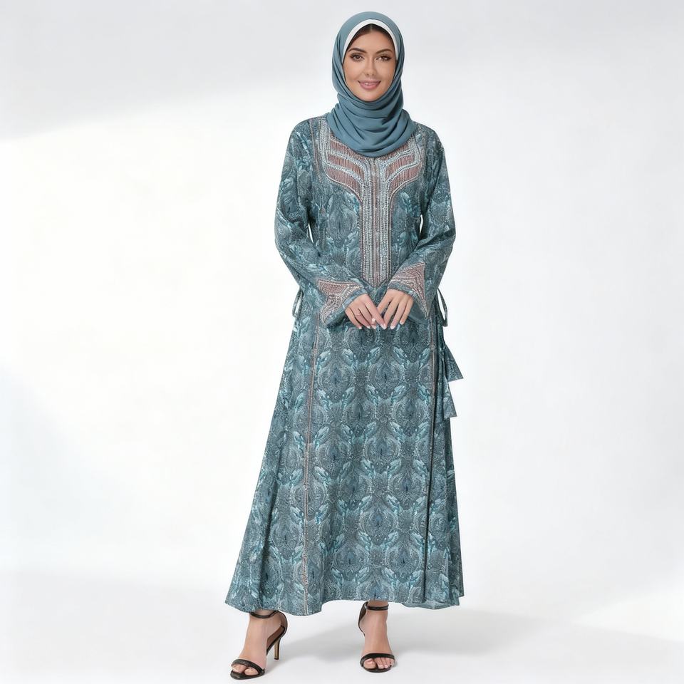 ชุดอาบายะห์ลายดอกไม้หรูหรา ประดับด้วยงานปักมือระดับพรีเมียม พร้อมคริสตัลติดร้อน สำหรับสตรีชาวมุสลิม งานเลี้ยงกลางคืน สไตล์ใหม่