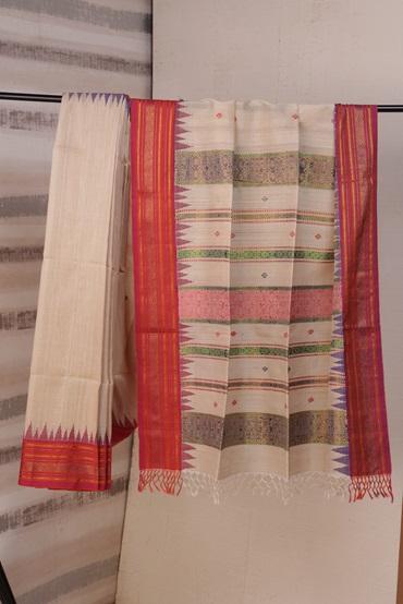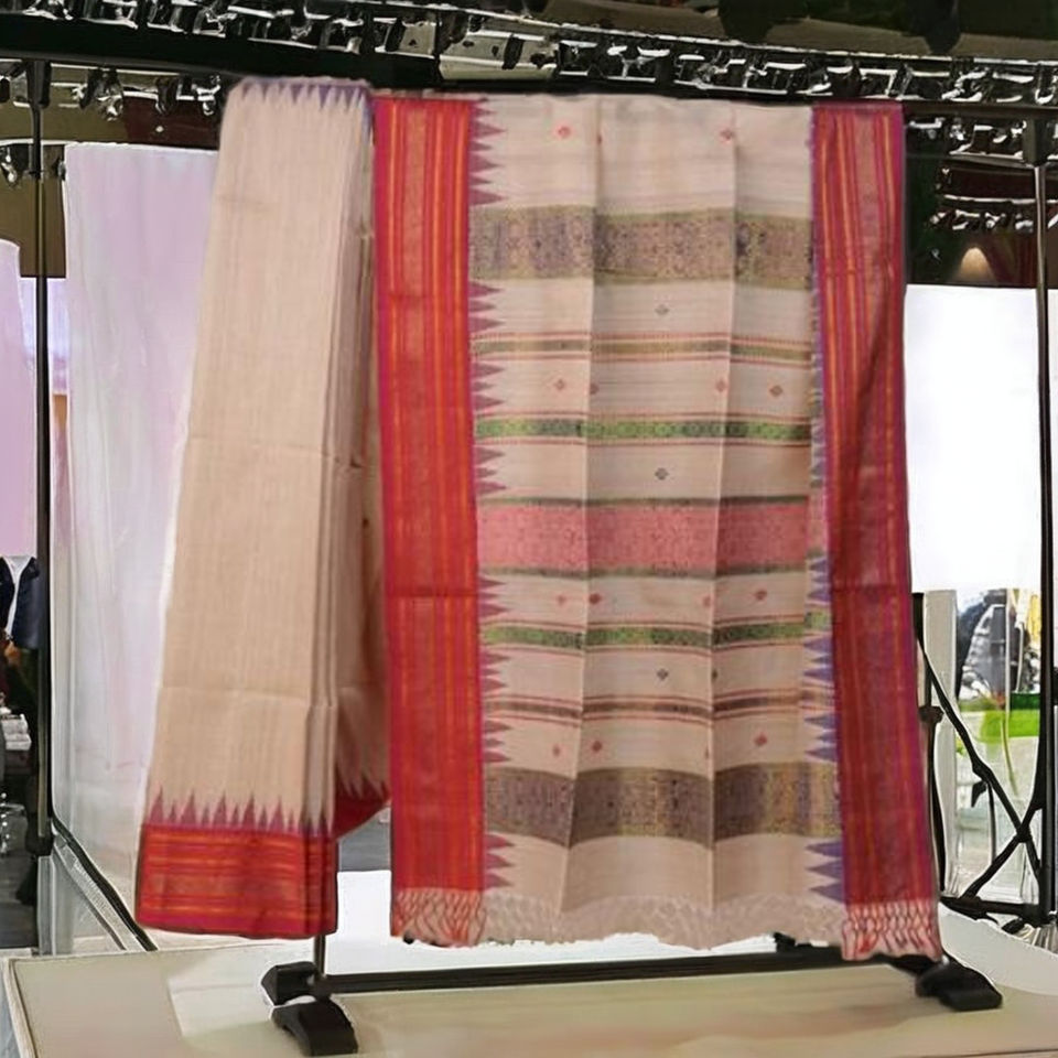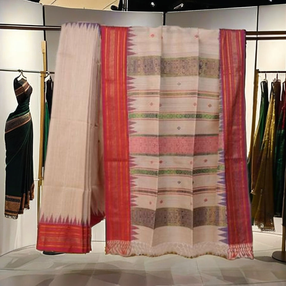 ผ้าส่าหรีผ้าฝ้ายผสมไหมทอมือคุณภาพพรีเมียม พร้อมขอบผ้าปักดิ้นสีแดงตัดกัน | คอลเลกชันชุดงานรื่นเริงและชุดแต่งงานสุดหรูสำหรับผู้หญิงและเด็กผู้หญิง