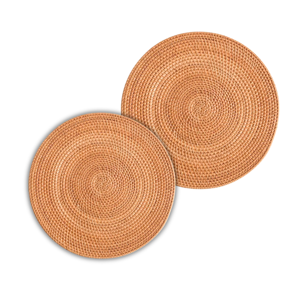 แผ่นรองจานหวายสานด้วยมือแบบพรีเมี่ยมทนความร้อนกันน้ำเป็นมิตรกับสิ่งแวดล้อมสำหรับงานแต่งงานกลางแจ้ง