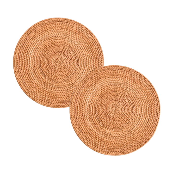 แผ่นรองจานหวายสานด้วยมือแบบพรีเมี่ยมทนทานต่อความร้อนเป็นมิตรกับสิ่งแวดล้อมโต๊ะรับประทานอาหารที่ชาร์จในงานแต่งงาน